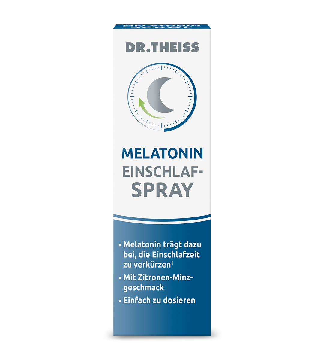 Der Hauptwirkstoff Melatonin trägt erwiesenermaßen dazu bei, die Einschlafzeit zu verkürzen. Die positive Wirkung tritt ein, wenn dem Körper kurz vor dem Zubettgehen 1 mg Melatonin zugeführt wird – was exakt zwei Sprühstößen des Produkts entspricht. Damit ist das Dr. Theiss Melatonin Einschlaf-Spray besonders präzise dosierbar und einfach in der Anwendung.